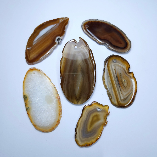 Piedra natural teñida cortada en rodajas y perforada en un extremo, tamaño de 4 a 7 cm aproximadamente.