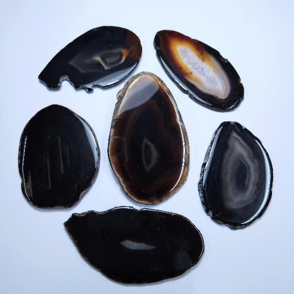 Piedra natural teñida cortada en rodajas de 4 a 7 cm aproximadamente.