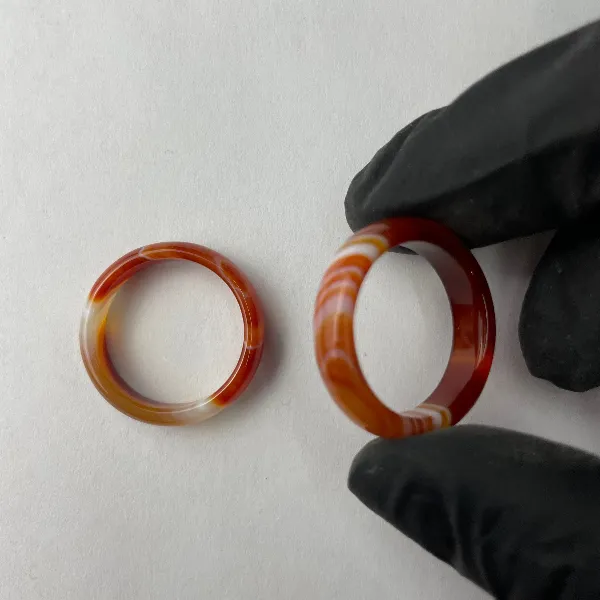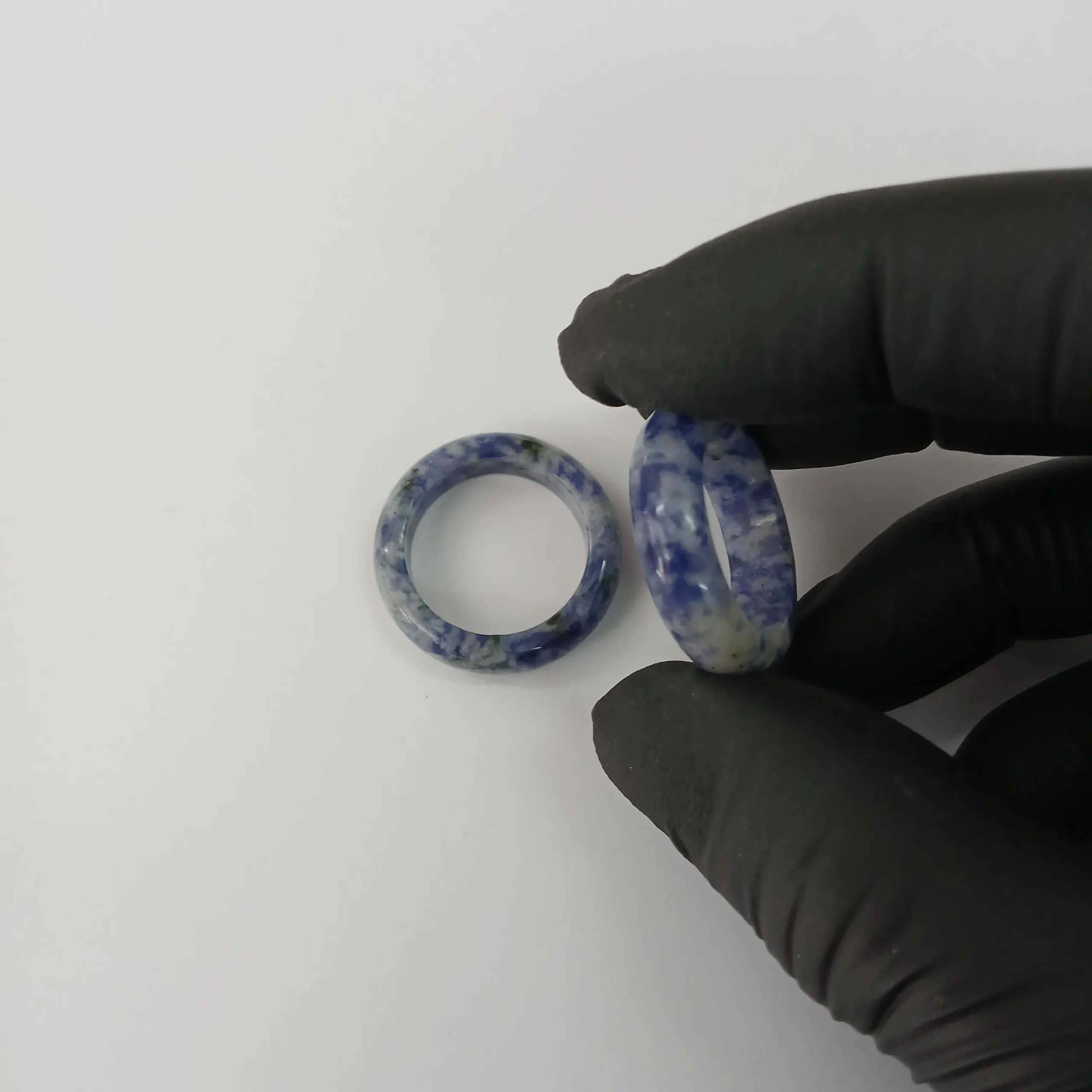 Piedra natural pulida en forma de anillo con espesor de 0,5 cm aproximadamente. Diametro interior variable de 1,6 hasta 2,0 cm.