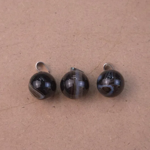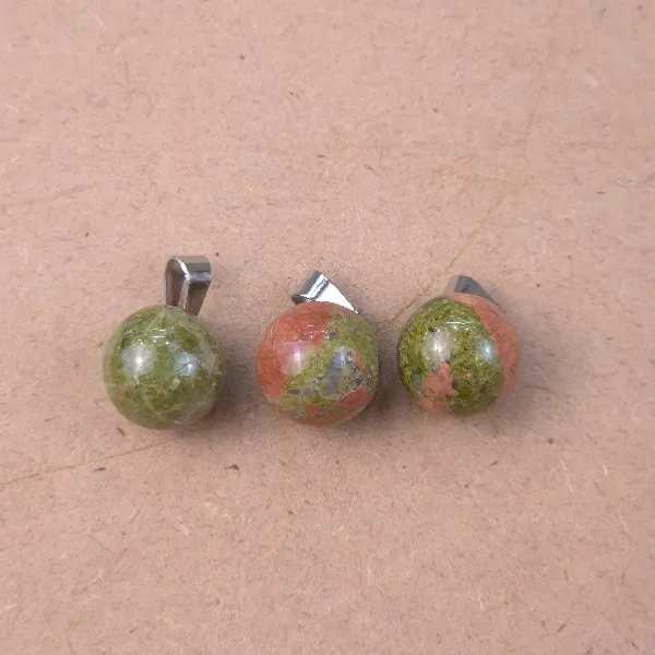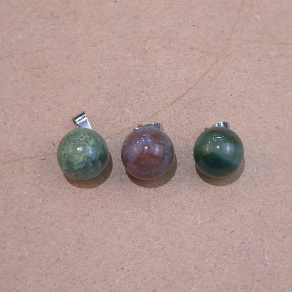 Piedra natural pulida y trabajada con forma de esfera, perforada para dije con enganche de acero. Tamaño aproximado de diametro 1,5 cm.