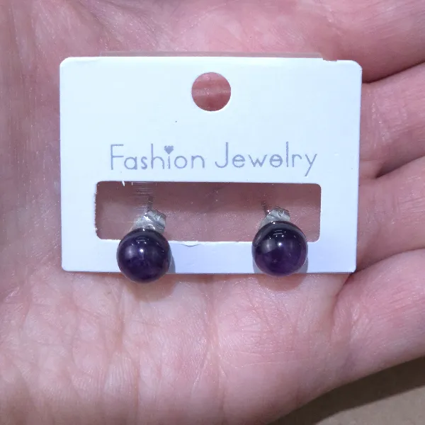 Piedra natural pulida en forma de esfera de 8mm. Perforada con terminacion de caravana y tapones en acero quirurgíco.