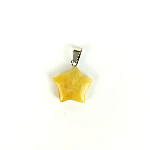 Piedra natural pulida y trabajada con forma de estrella, perforada para dije con enganche de acero. Tamaño aproximado de 2cm.