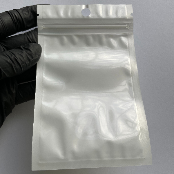 Bolsa blanca resistente con cierre ziploc de tamaño: 8×12 cm.