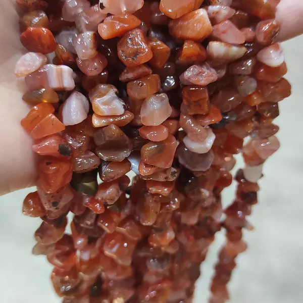 Piedra natural, perforada y pulida con forma irregular. Tamaño aproximado de cada piedra 0,8 a 1,2 cm aprox. El largo del collar es de 85/90 cm aprox.