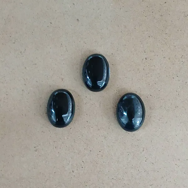 Piedra natural pulida con forma ovalada de unos 1,3 x 1,8 cm aproximadamente.