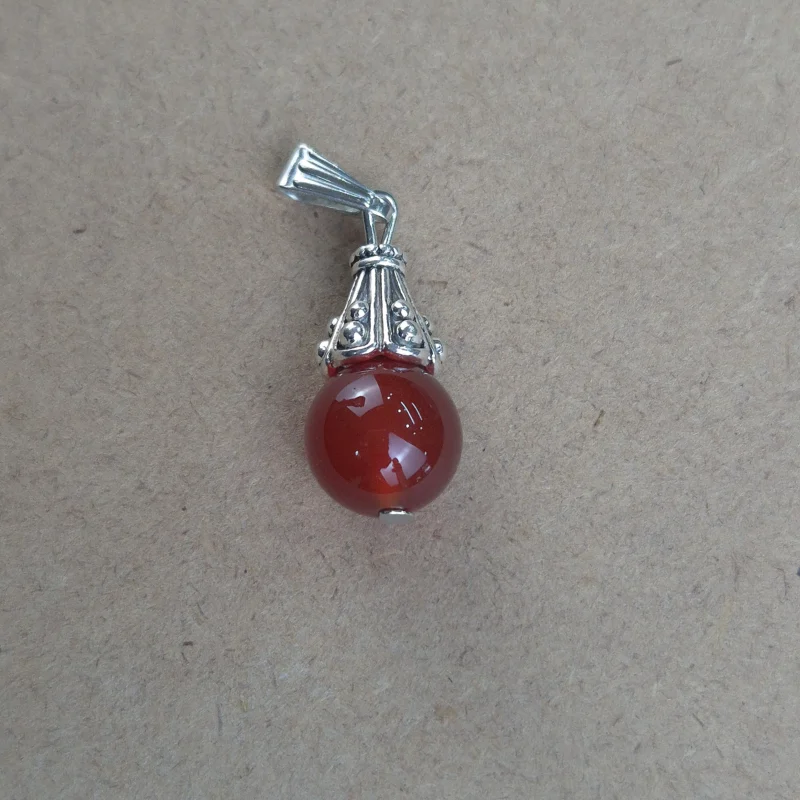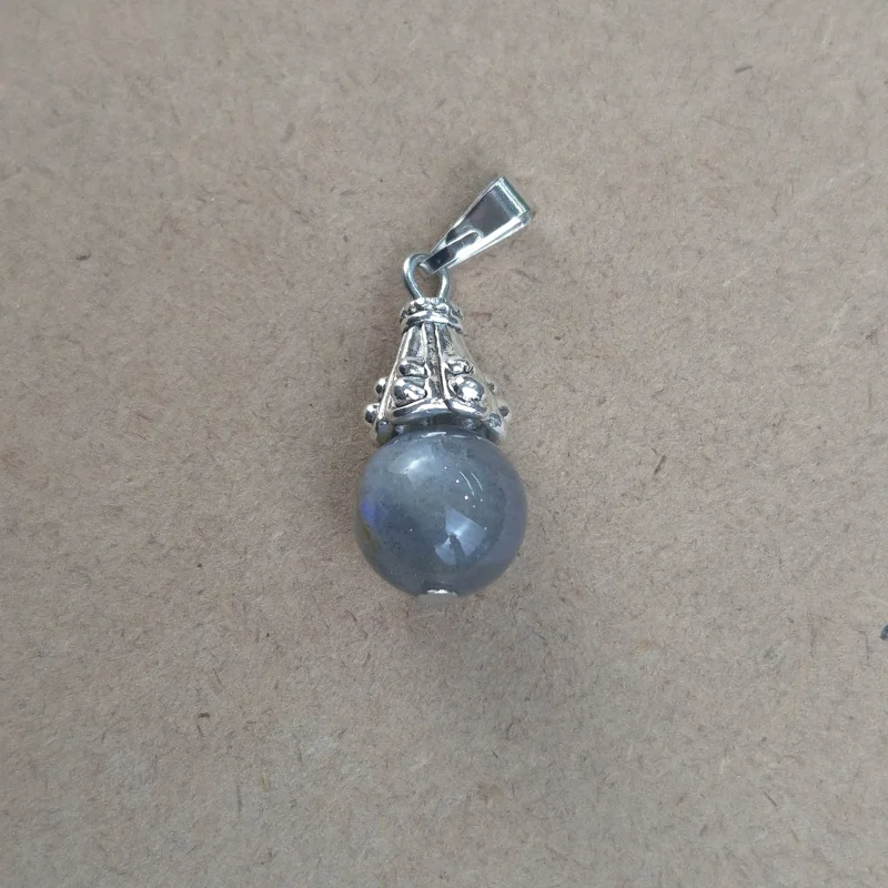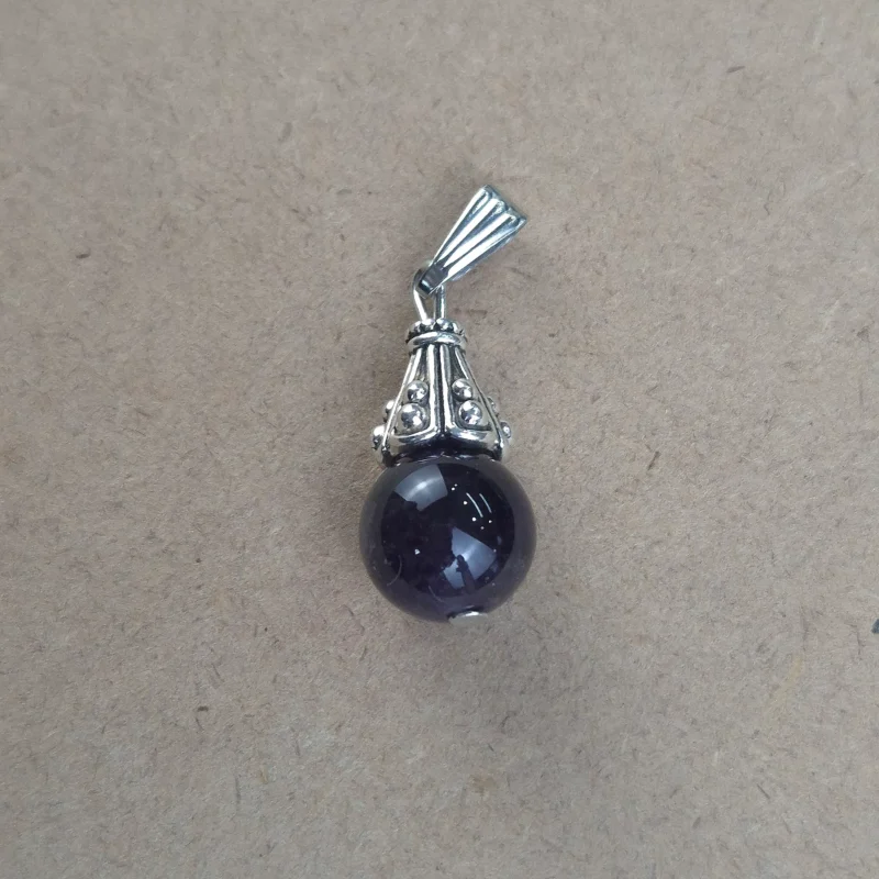 Piedra natural pulida con forma de esfera, engarzada metal. Tamaño aproximado 2 cm.