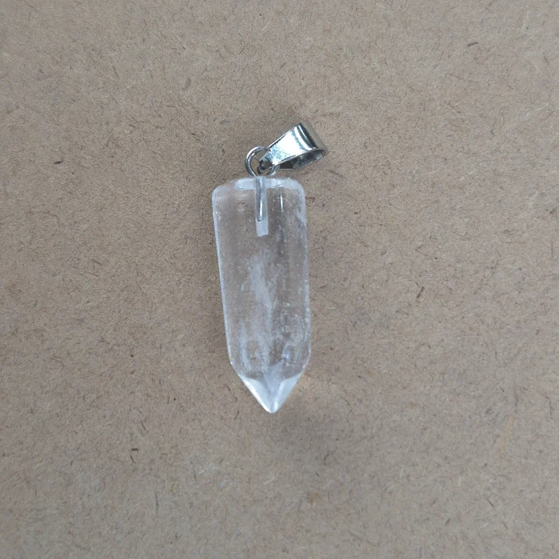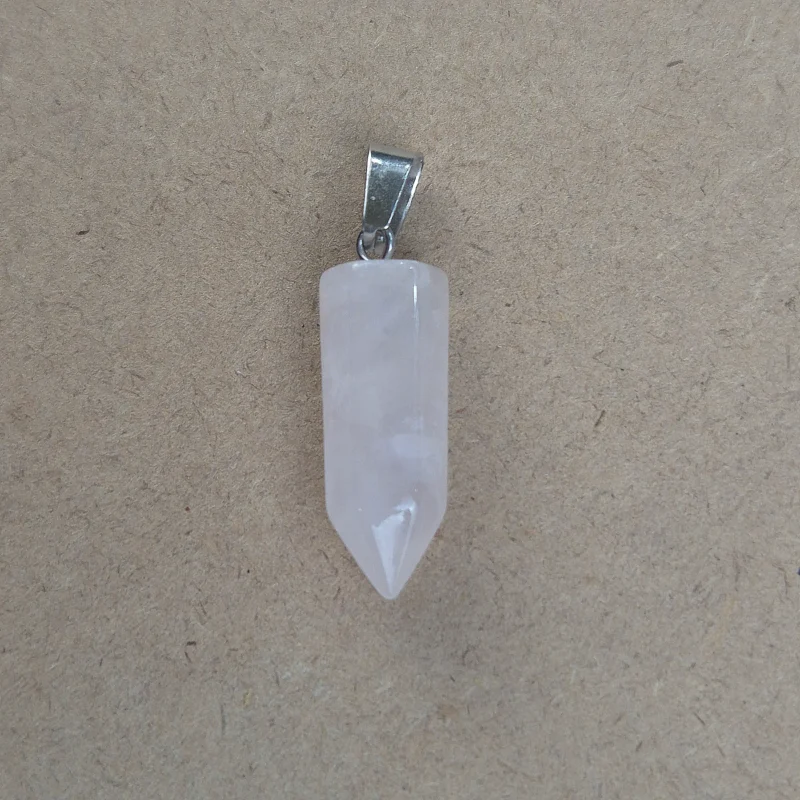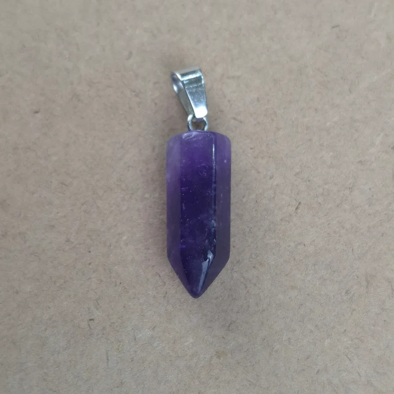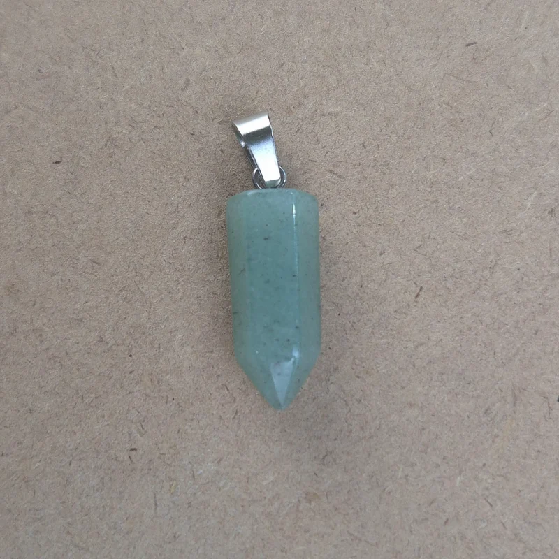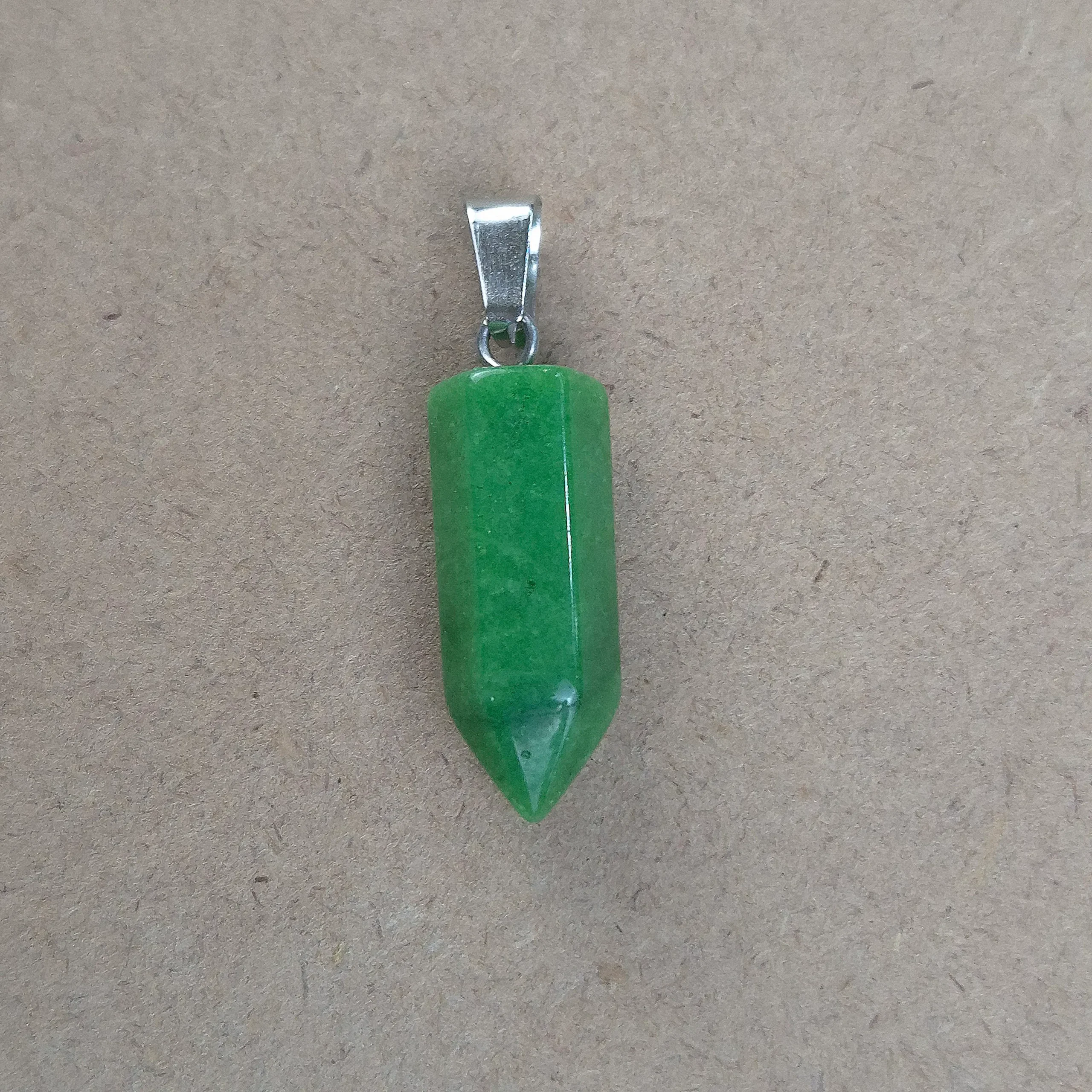 Piedra natural pulida y trabajada con forma de lapíz, perforada para dije con enganche de acero. Tamaño aproximado de diametro 2 cm.