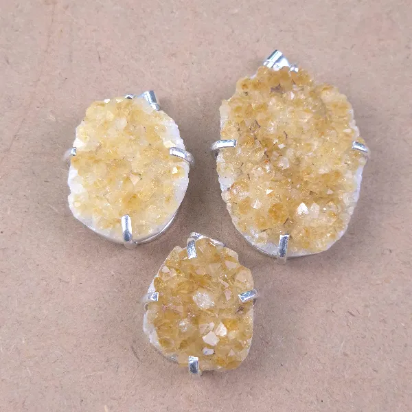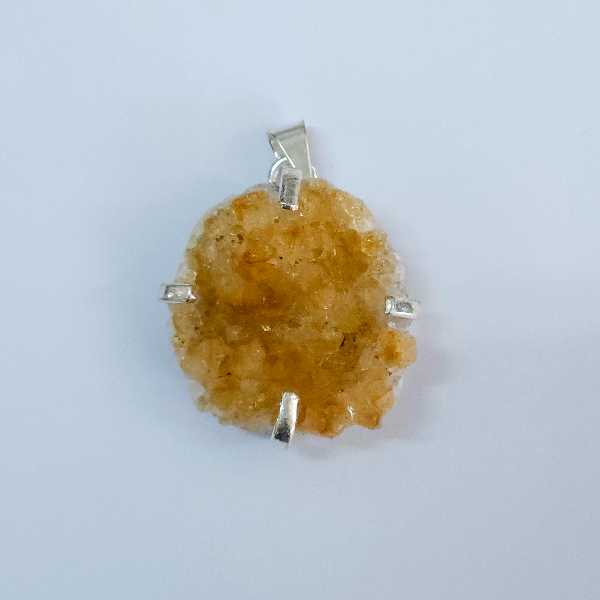 Piedra natural en bruto con engarce de acero quirurgíco, tamaño aproximado de 2 a 3 cm.