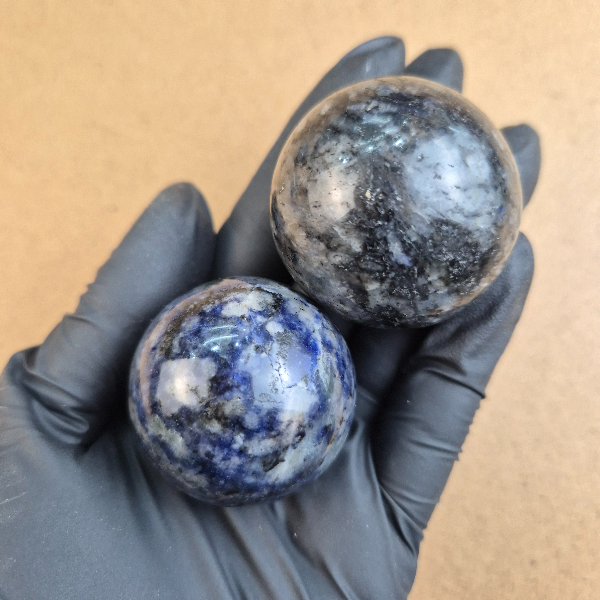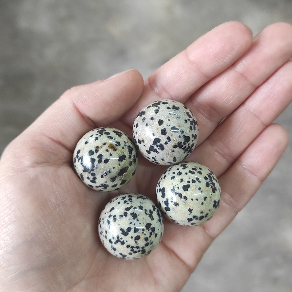 Piedra natural pulida en forma de esfera con un tamaño aproximado de diametro entre 3 y 5 cm.