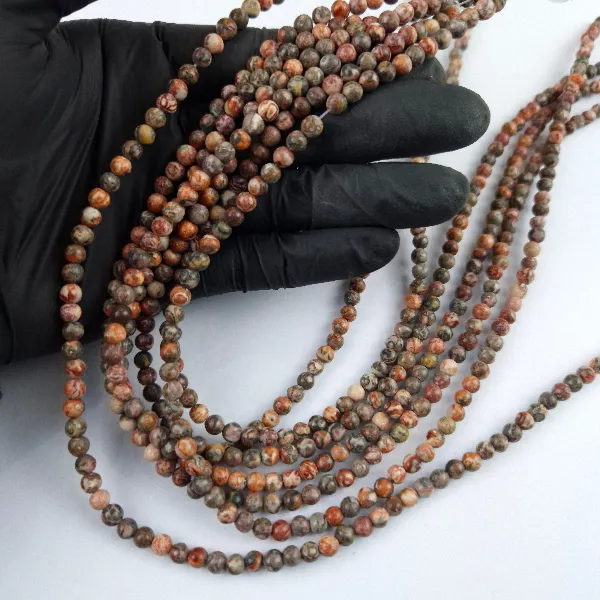 Tira de esferas perforadas de piedra natural con un diametro de 4mm aprox. y un largo de 40 cm, contiene unas 80/90 esferas aproximadamente.