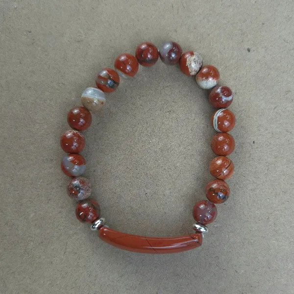 Piedra natural pulida en esferas perforadas de 8mm. Diametro aproximado de la pulsera: 6cm