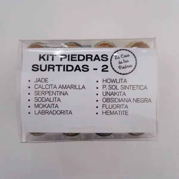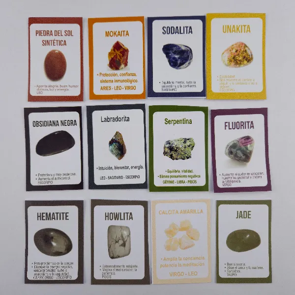 Contiene 12 frascquitos de vidrio de 7 cm – El contenido es de una piedra diferente po frasco – Incluye tarjeta informativa de cada piedra.