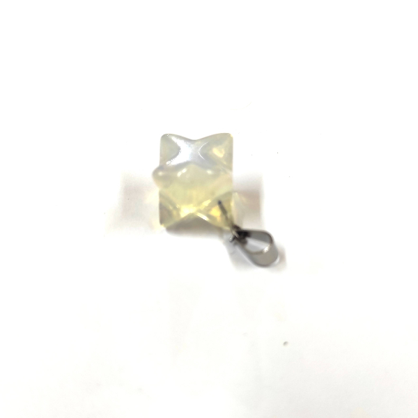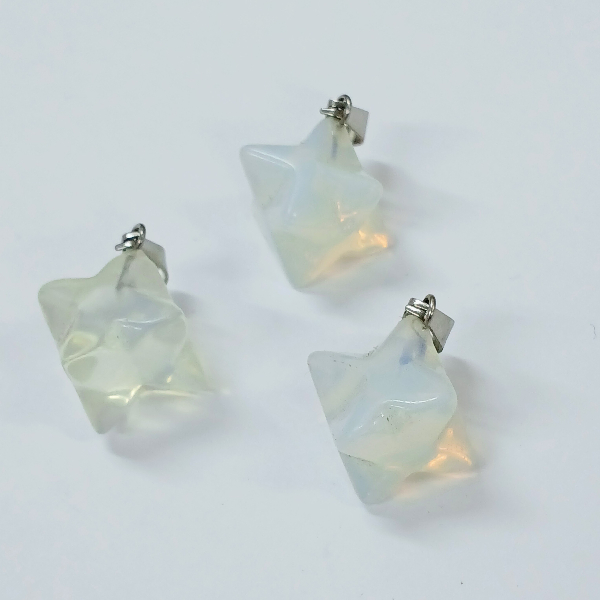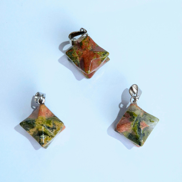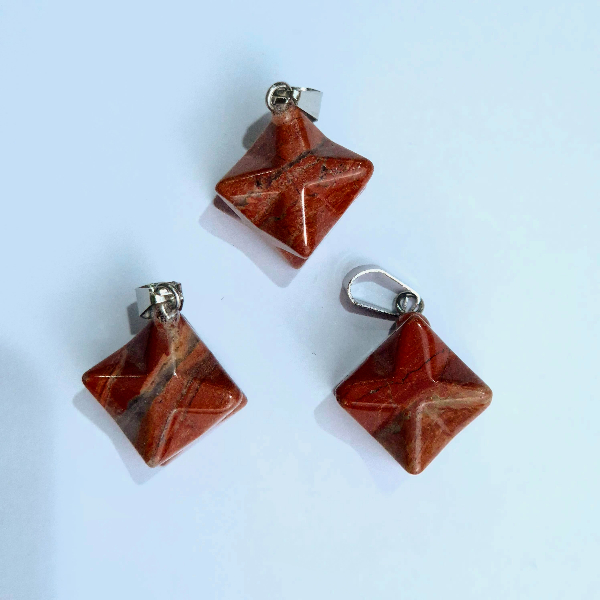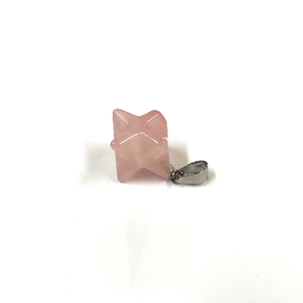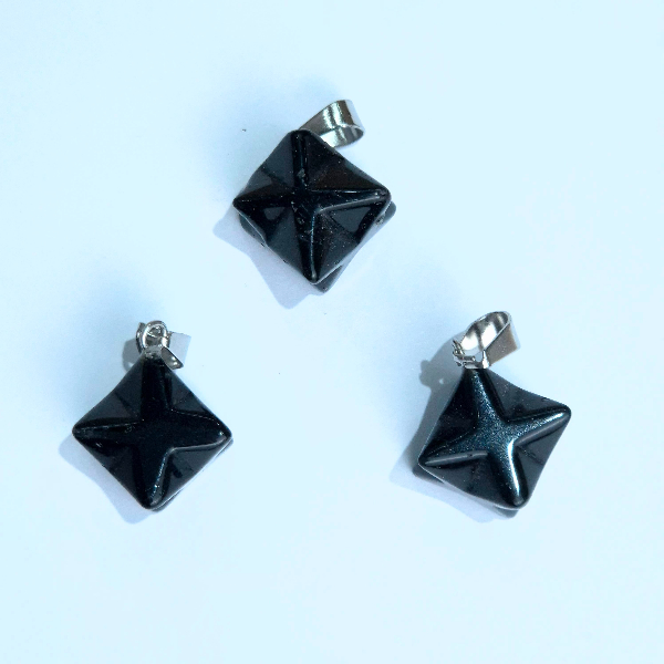 Piedra natural pulida y trabajada con forma de Merkaba, perforada para dije con enganche de acero. Tamaño aproximado de 2cm.