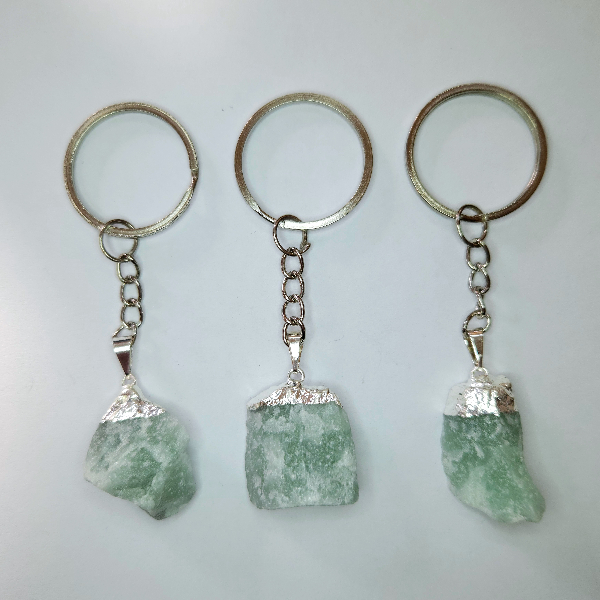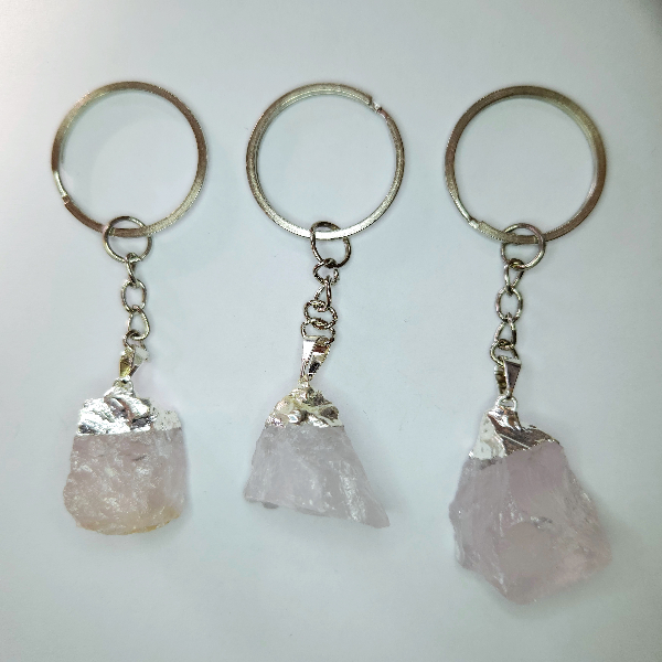 Piedra natural en bruto 3 a 4 cm aproximadamente, con engarce de electroplate y terminacion con cierre para llavero en acero quirurgico.