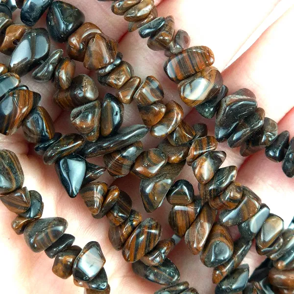 Piedra natural, perforada y pulida con forma irregular. Tamaño aproximado de cada piedra 0,5 a 0,8 cm aprox. El largo del collar es de 85 cm aprox.