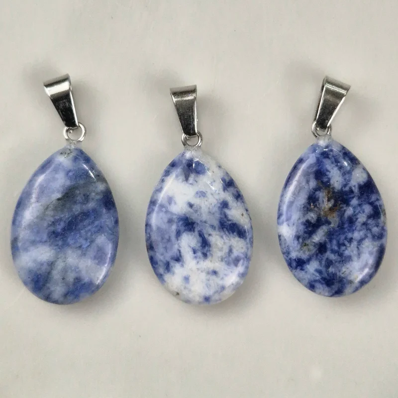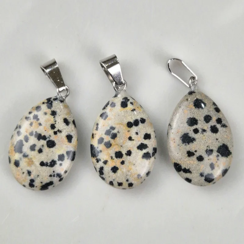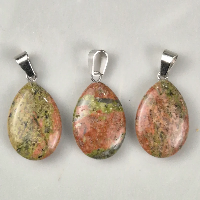 Piedra natural pulida y trabajada con forma de gota, perforada para dije con enganche de acero. Tamaño aproximado de 3cm.