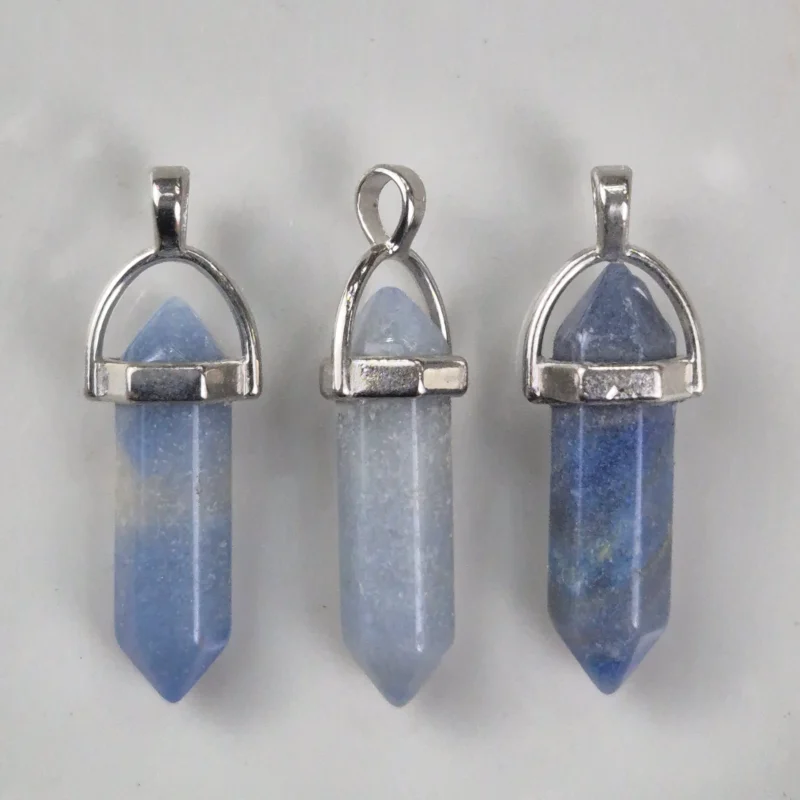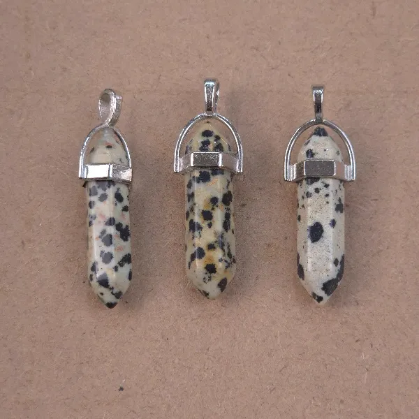 Piedra natural pulida y trabajada con forma hexagonal, con enganche de acero. Tamaño aproximado de 4cm.
