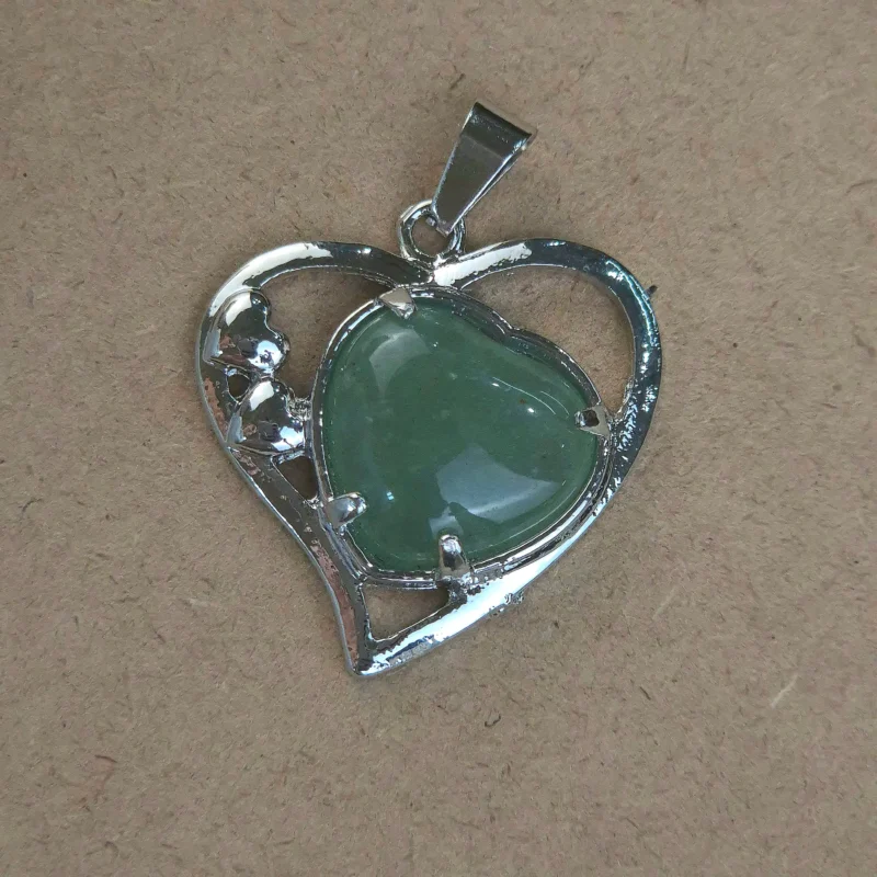 Piedra natural, engarzada en metal con forma de corazón. Tamaño aproximado 3 cm.