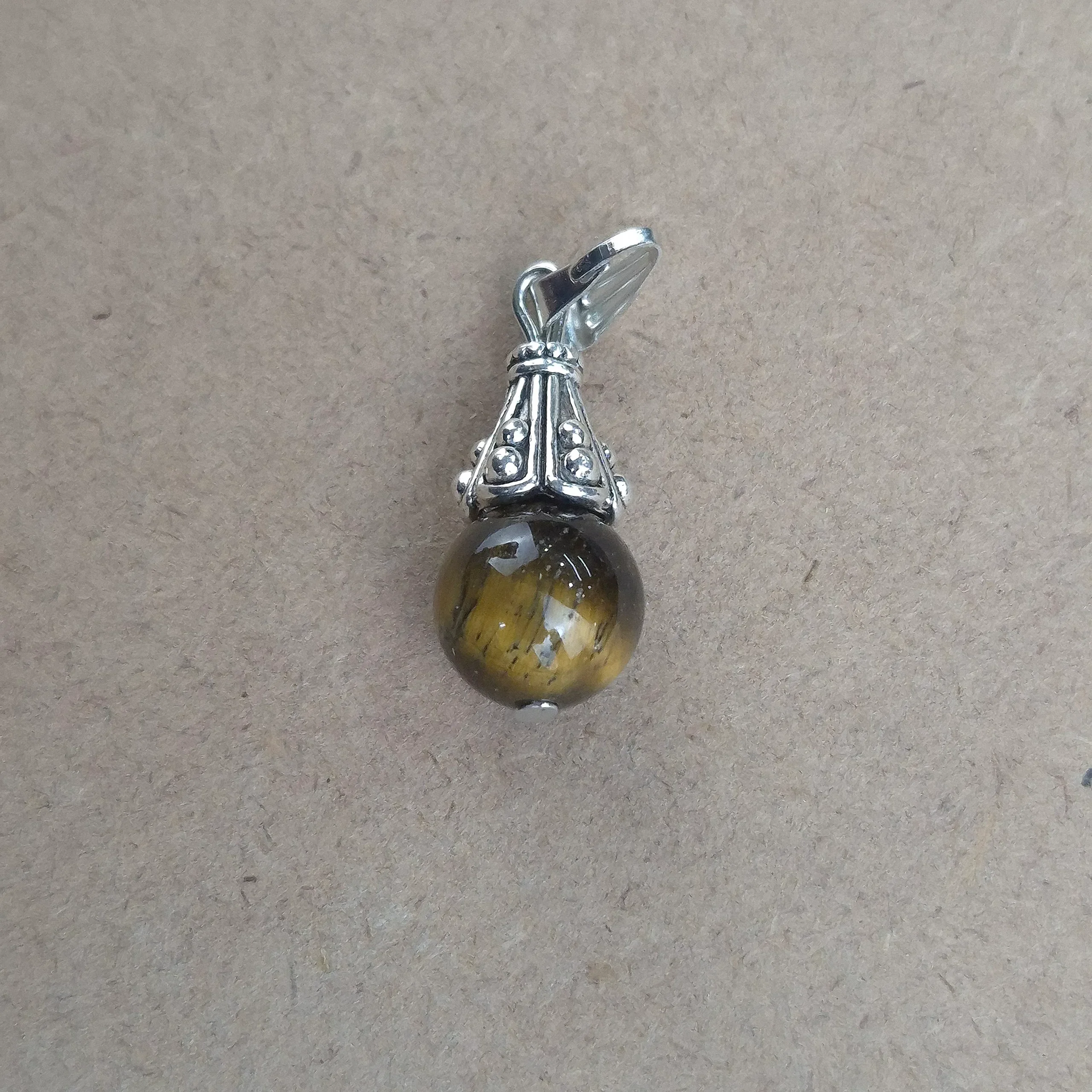 Piedra natural pulida con forma de esfera, engarzada metal. Tamaño aproximado 2 cm.