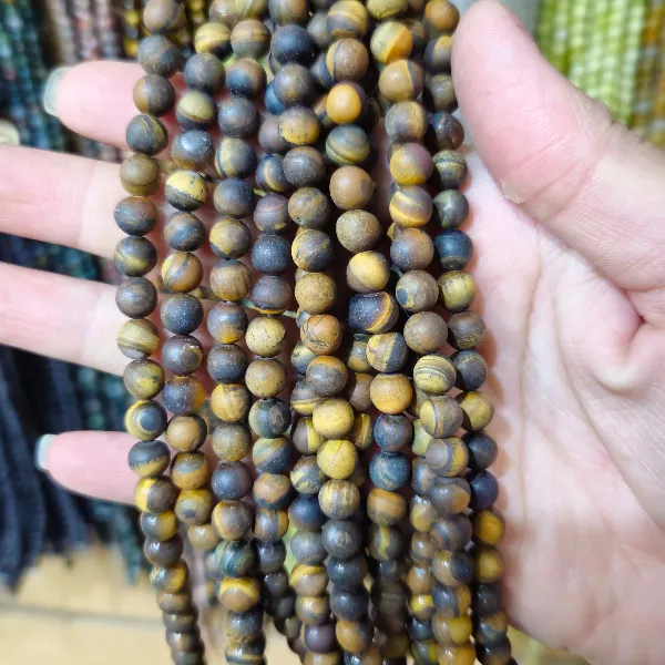 Tira de esferas perforadas de piedra natural con un diametro de 6mm aprox. y un largo de 40/42 cm, contiene unas 60/70 esferas aproximadamente.