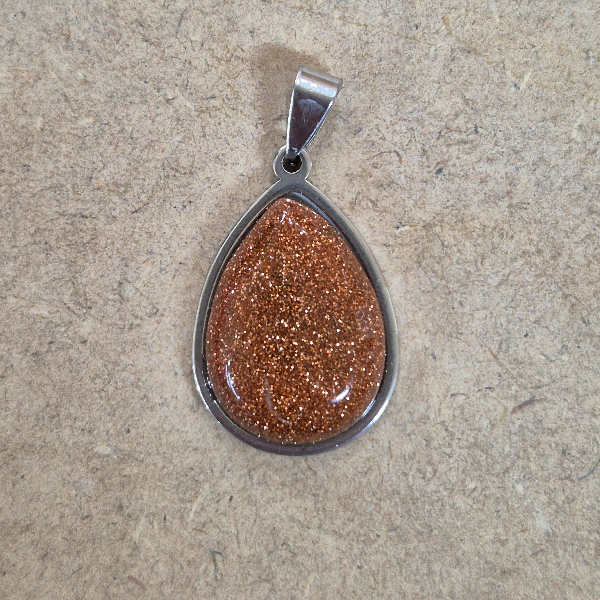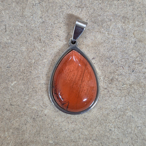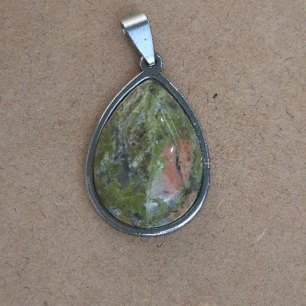 Piedra sintetica pulida y trabajada con forma de gota, con terminacion en acero quirurgíco. Tamaño aproximado 3cm.