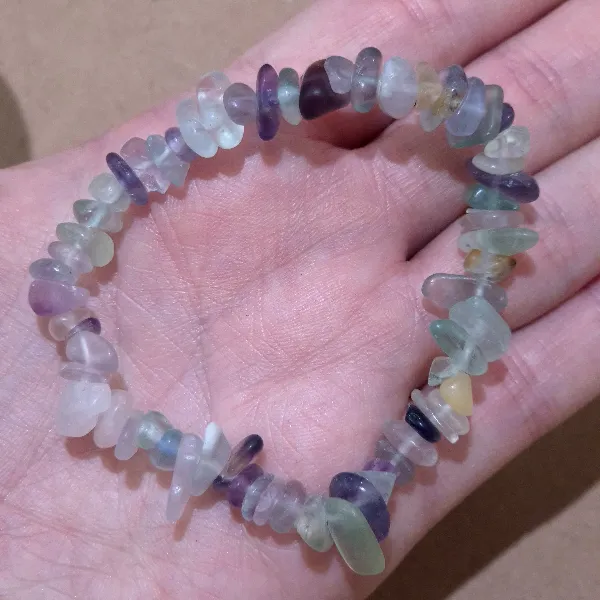 Piedra natural pulida de forma irregular, perforada. Diametro de la pulsera 7 cm aprox.