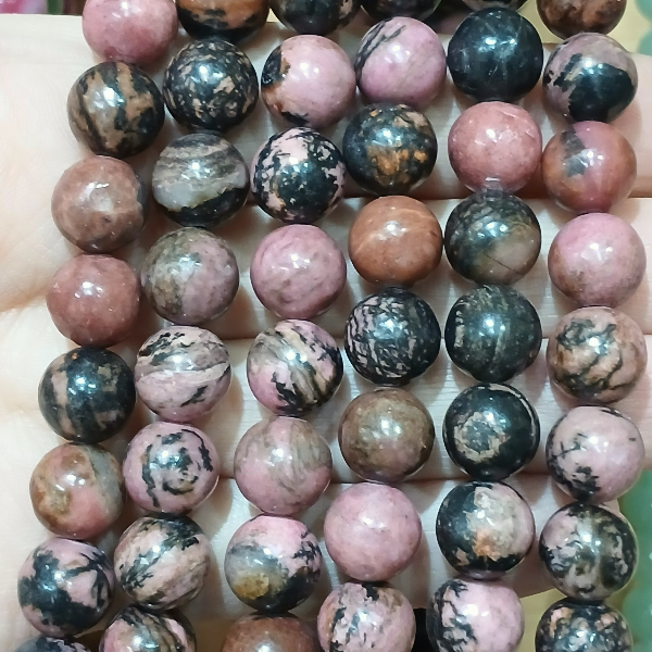 Tira 10mm de Rodonita rosa/negro