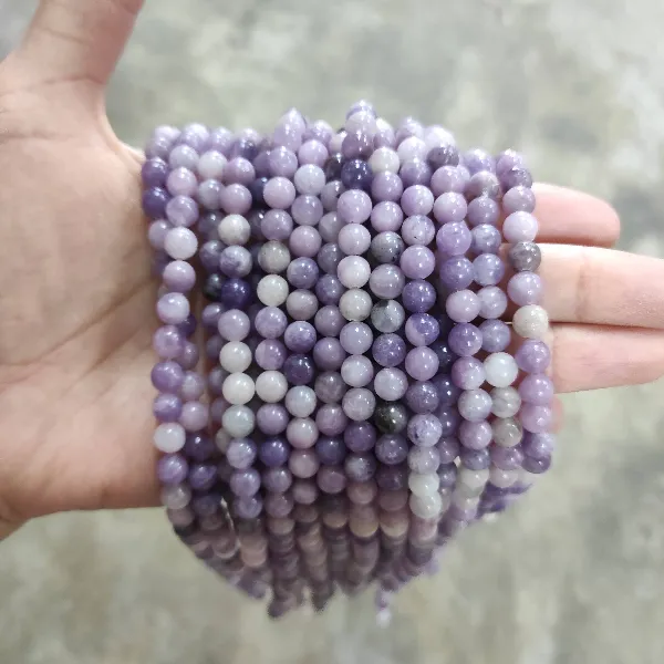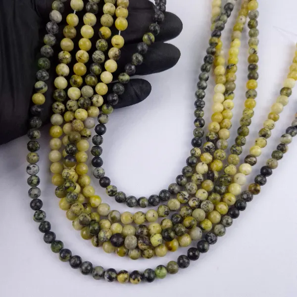Tira de esferas perforadas de piedra natural con un diametro de 6mm aprox. y un largo de 40/42 cm, contiene unas 60/70 esferas aproximadamente.