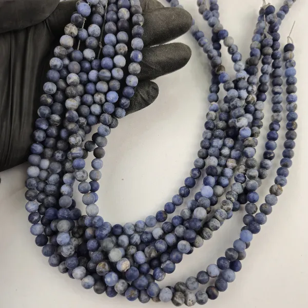 Tira de esferas perforadas de piedra natural con un diametro de 6mm aprox. y un largo de 40/42 cm, contiene unas 60/70 esferas aproximadamente.