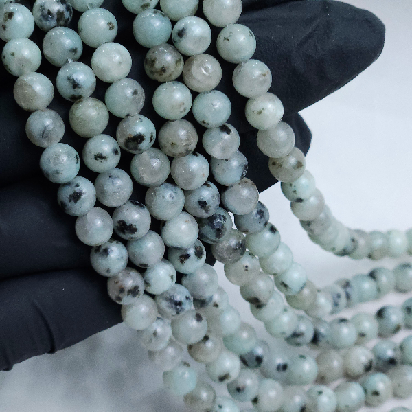 Tira de esferas perforadas de piedra natural con un diámetro de 6mm aprox. y un largo de 40/42 cm aprox. , contiene unas 60/70 esferas aproximadamente.